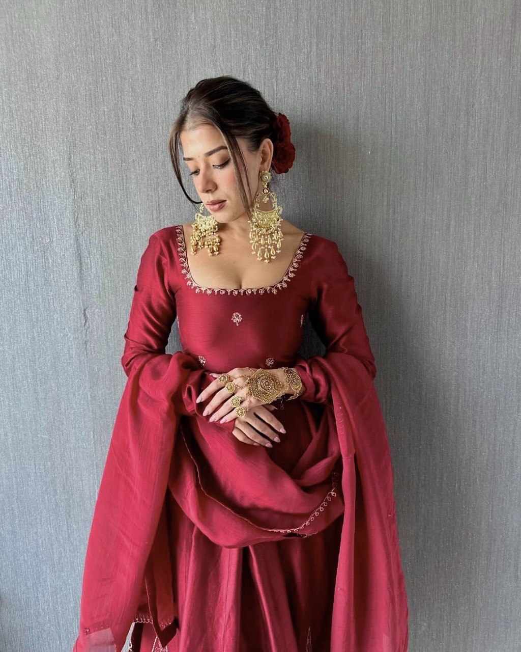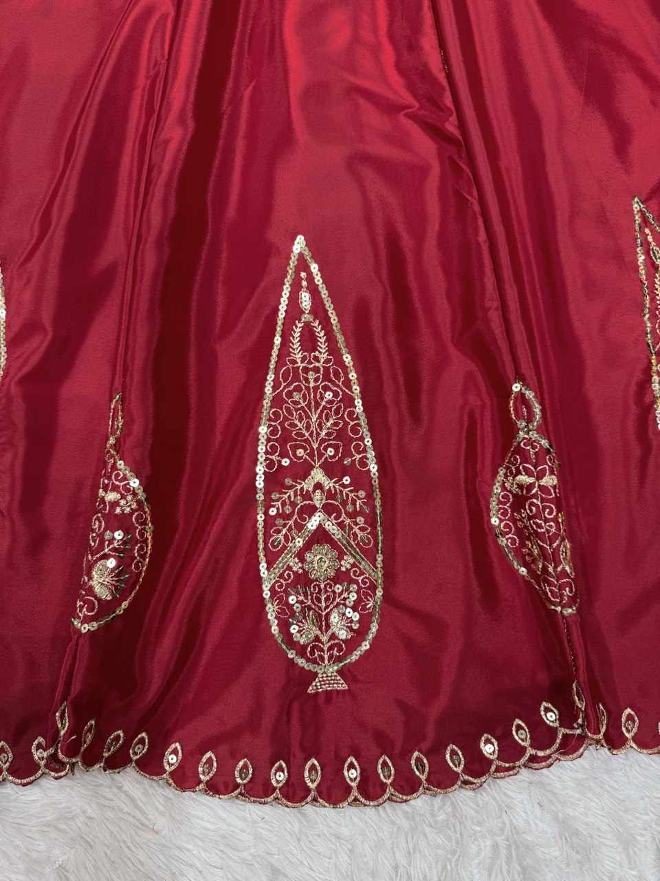 Name : KD 1505 Red Anarkali Natural Crep With Thred & Sequnce work Dress