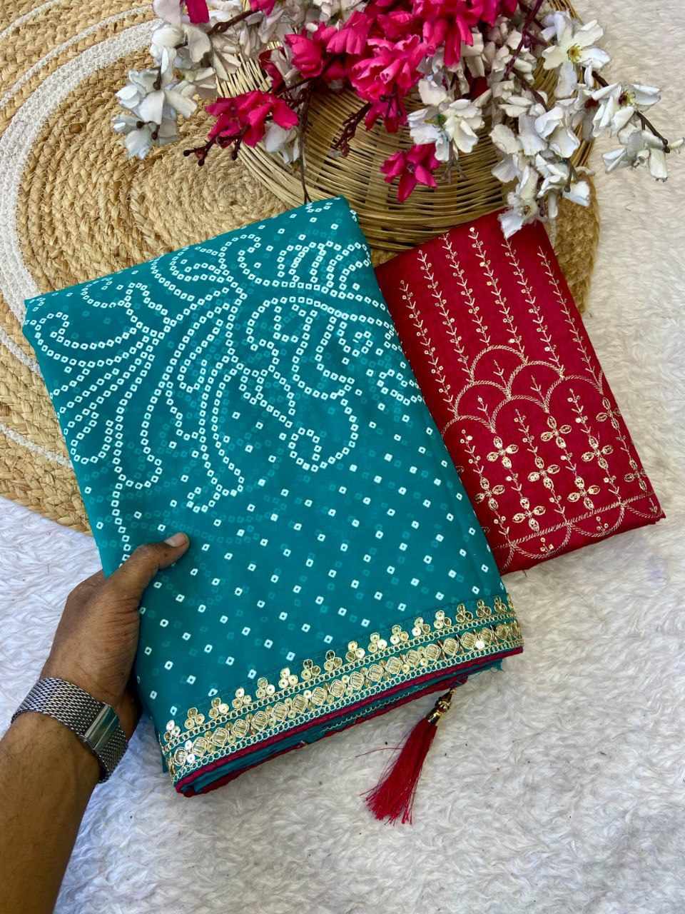 RC Bandhej Georgette heavy Coding Sequence border Saree