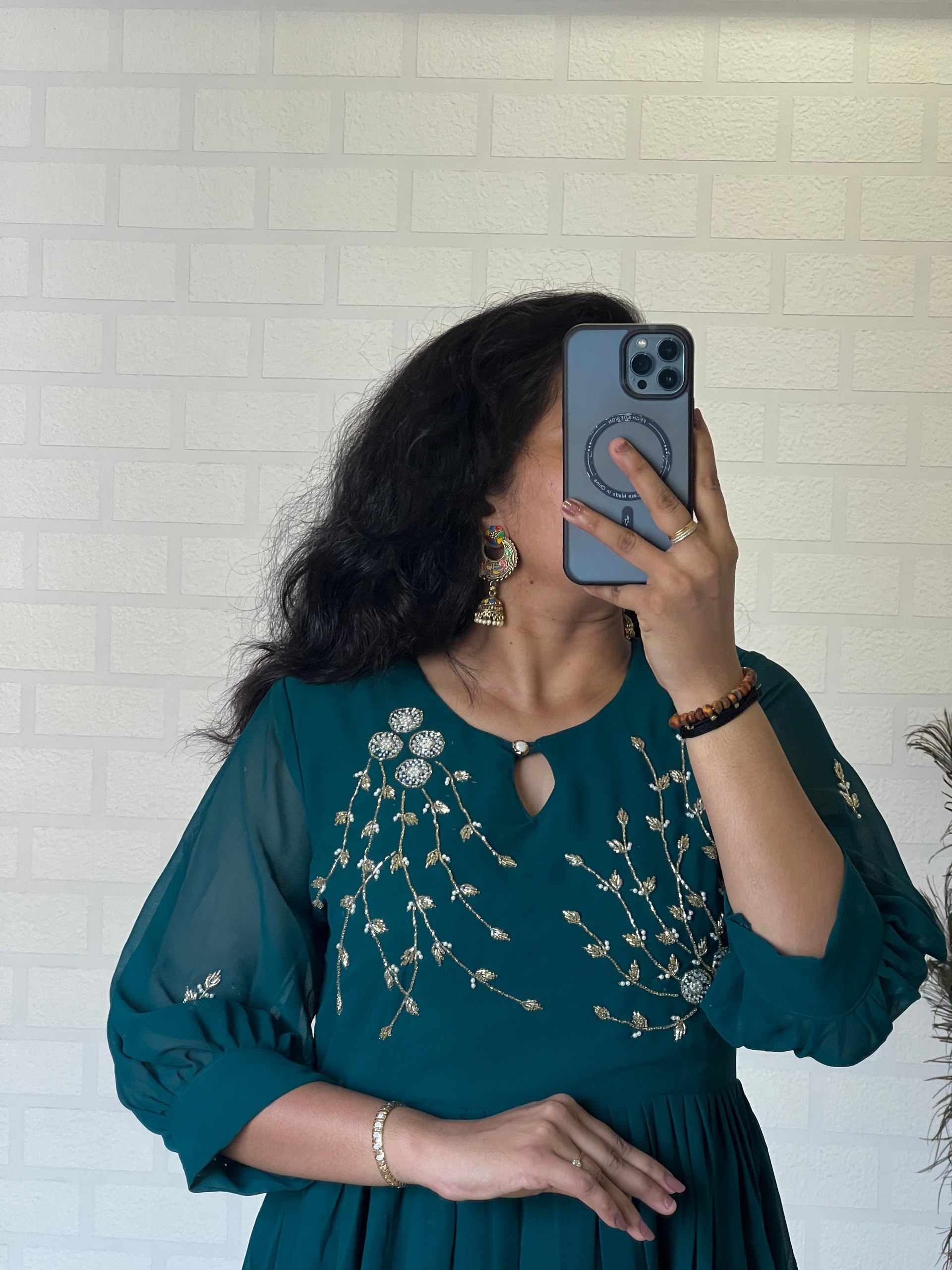 WM09 RAMA BLOOMING GEORGETTE HANDWORK KURTI