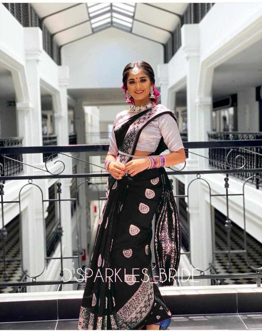 KPR 214 BLACK SOFT LICHI SILK SAREE