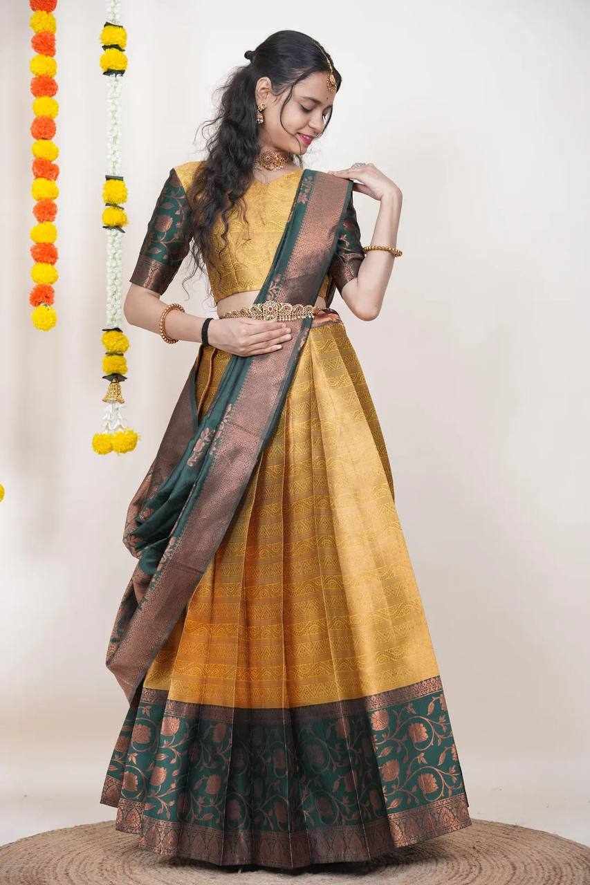 | Name : | KPW 330 Yellow Kanjiveram Silk Zari Lehanga |