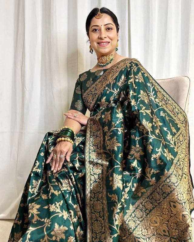 Reviews for MF 1620 GREEN BANARASI SOFT LICHI SILK SAREE