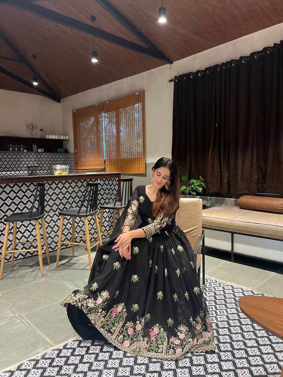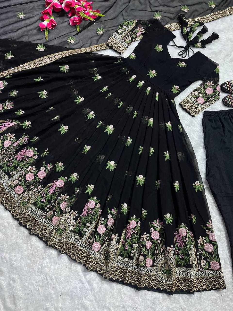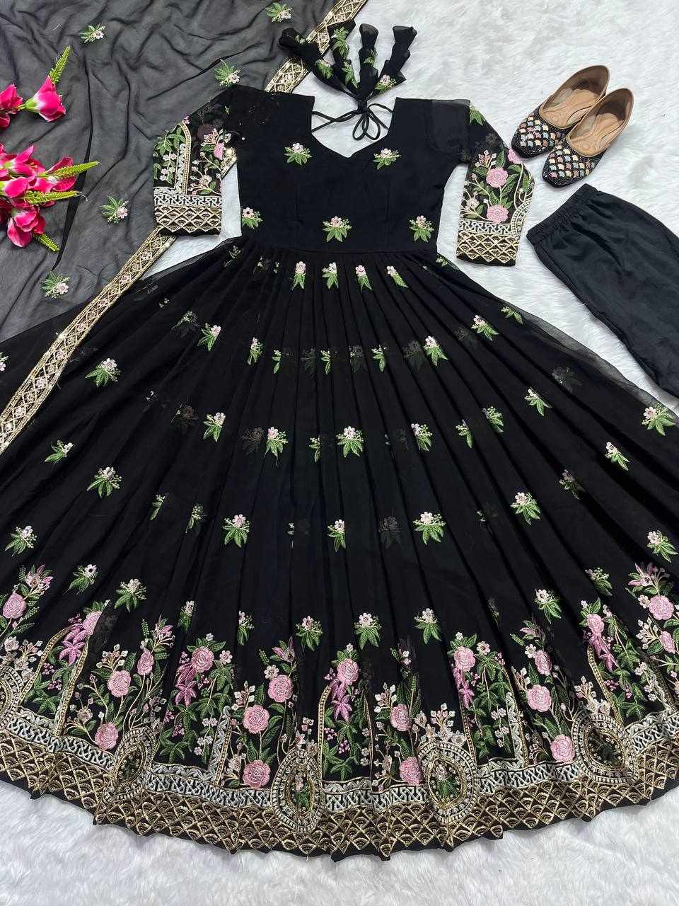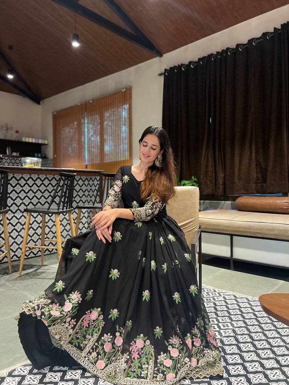 GOWN FABRIC: FOX GEORGETTE WITH EMBROIDERY WORK WITH FULL SLEEVES
