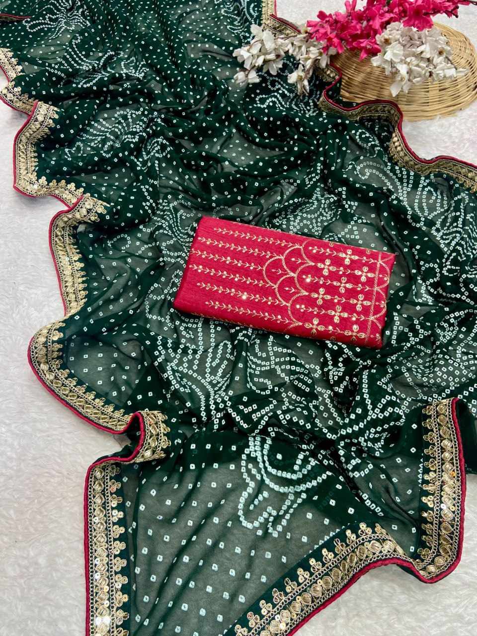 RC Green Bandhej Georgette heavy Coding Sequence border Saree
