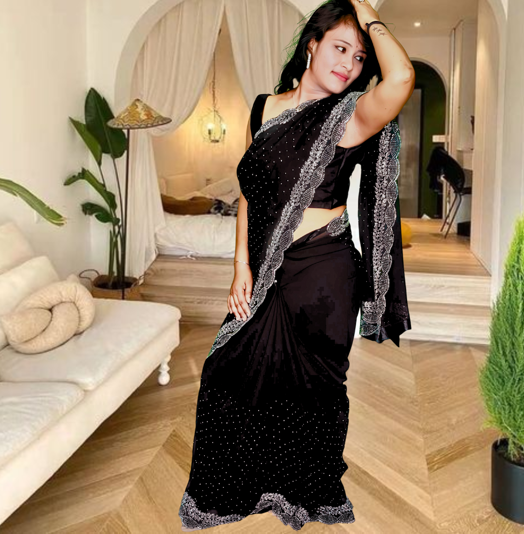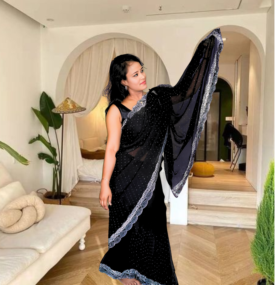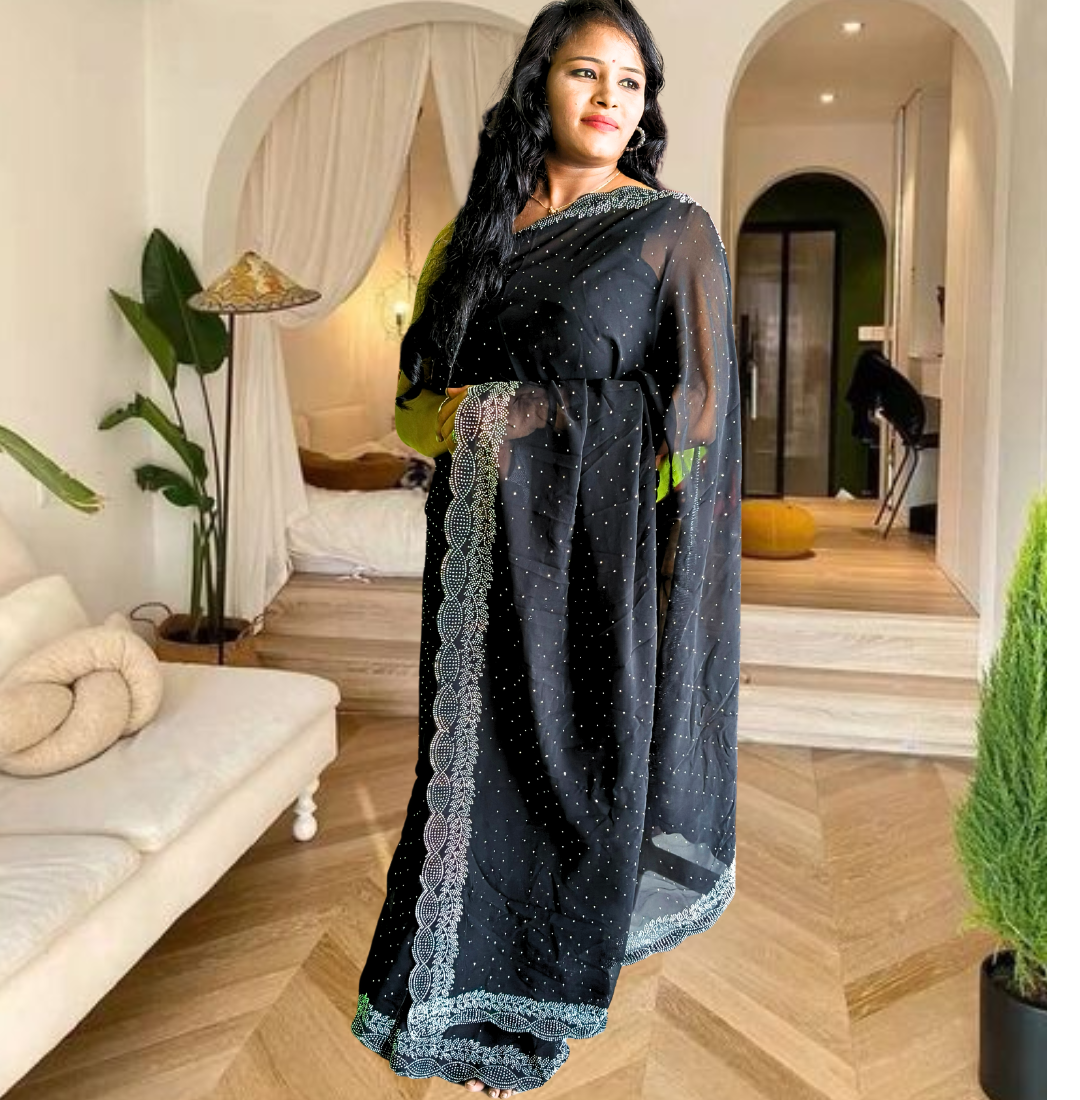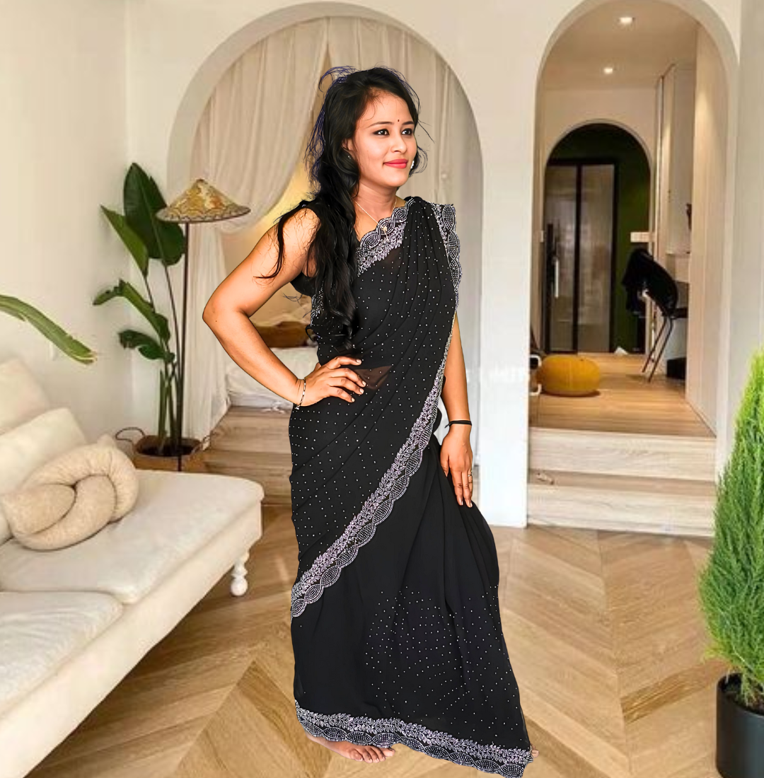 | Name : | S4s Black Karishma Siroski Stones Lace Georgette Party Wear Saree |