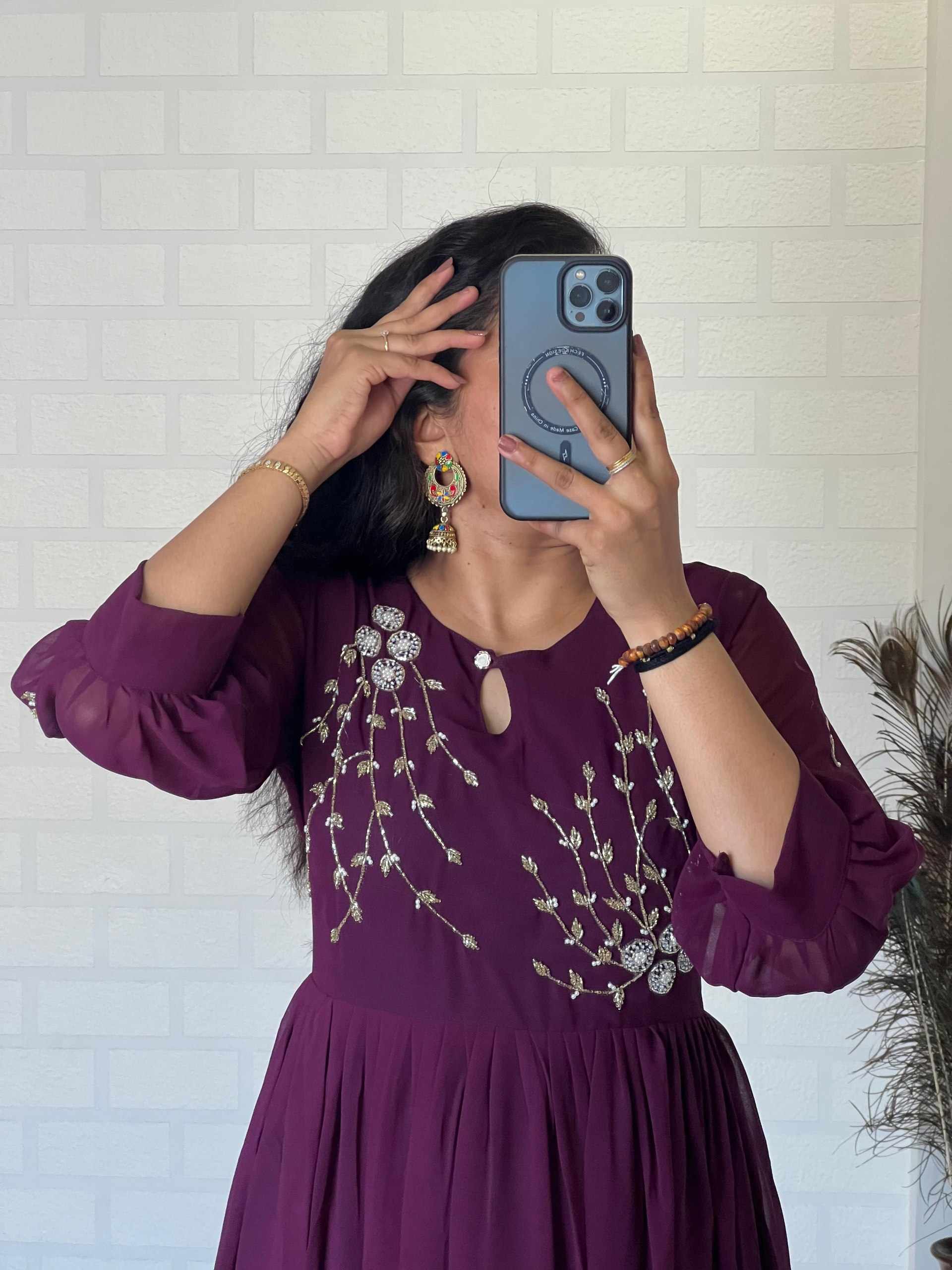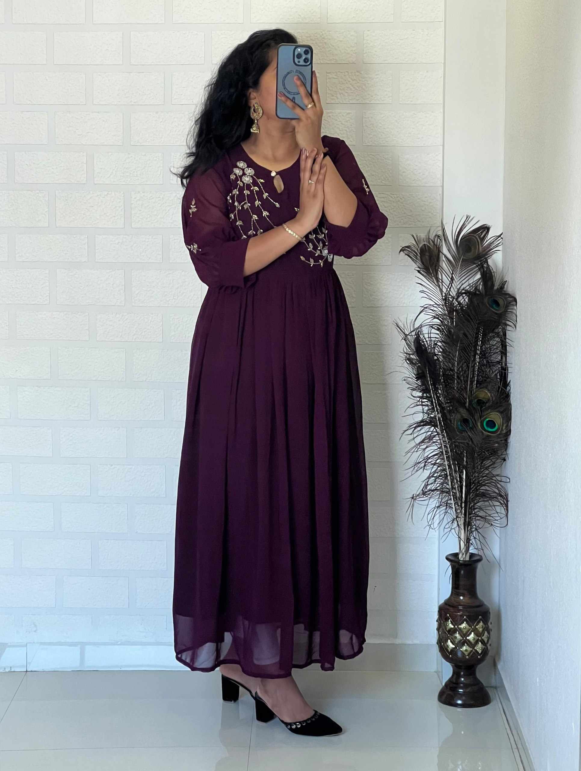 Reviews for WM09 PURPLE BLOOMING GEORGETTE HANDWORK KURTI