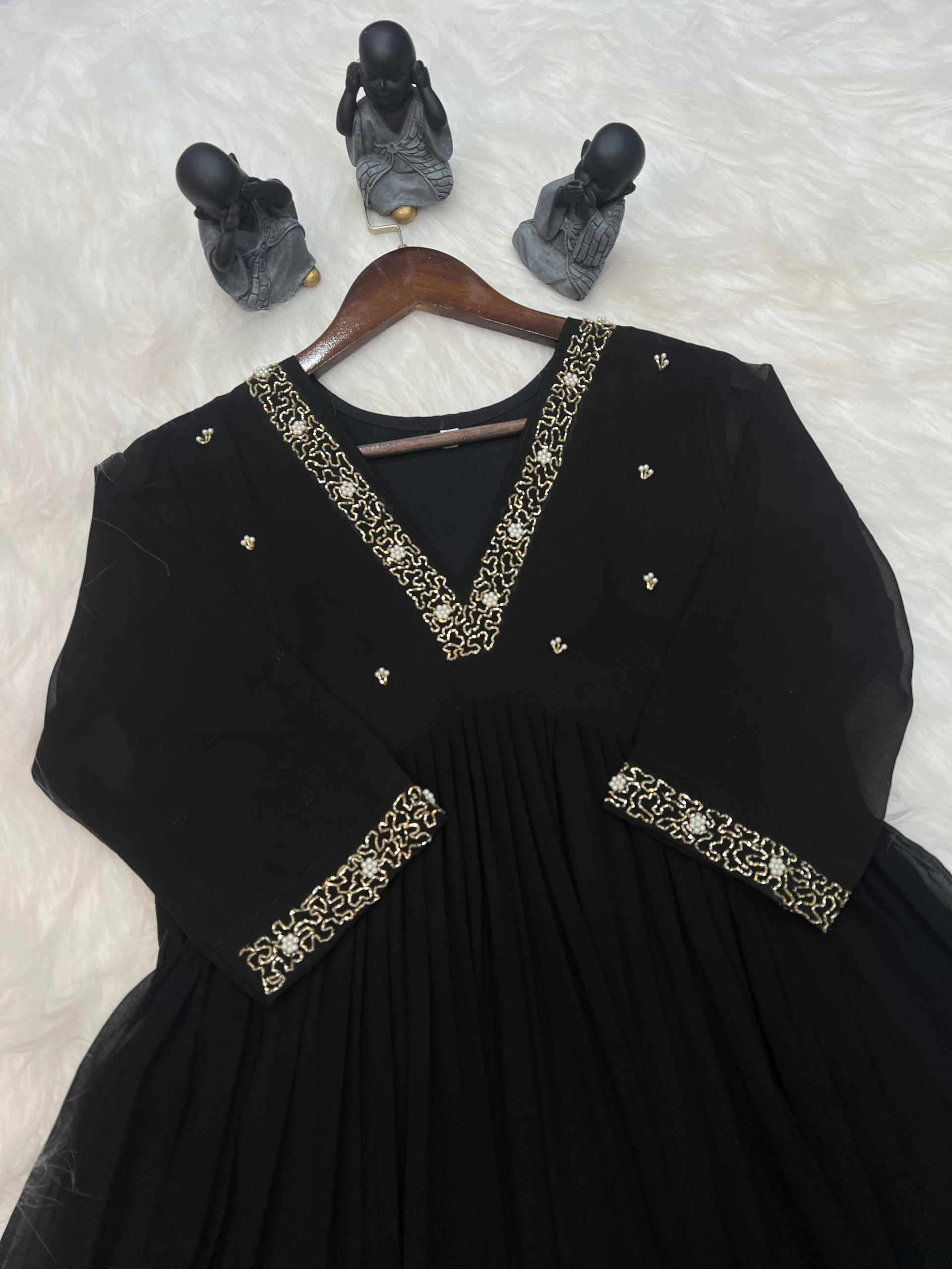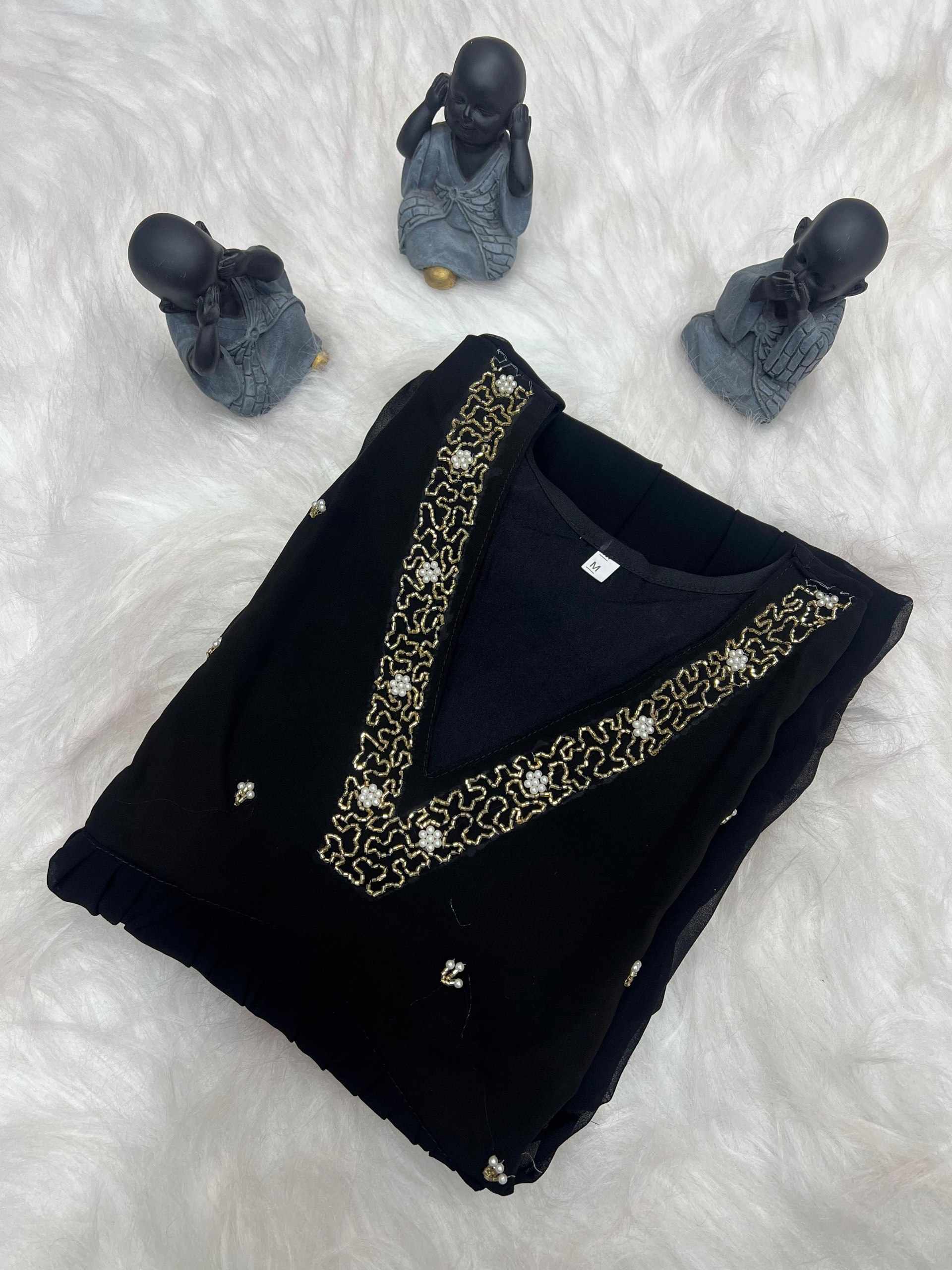 | Name : | WM10 BLACK BLOOMING GEORGETTE HANDWORK KURTI |