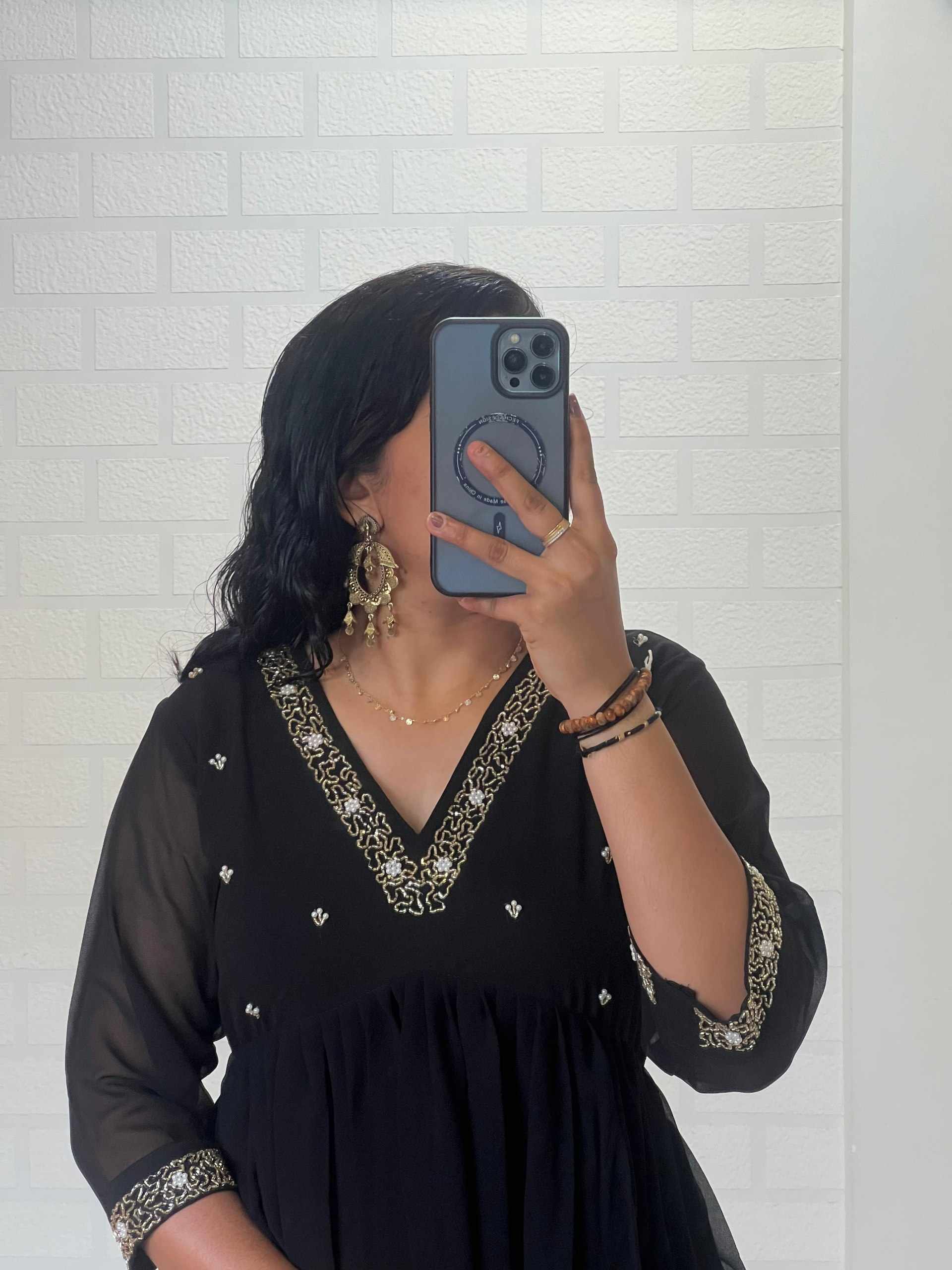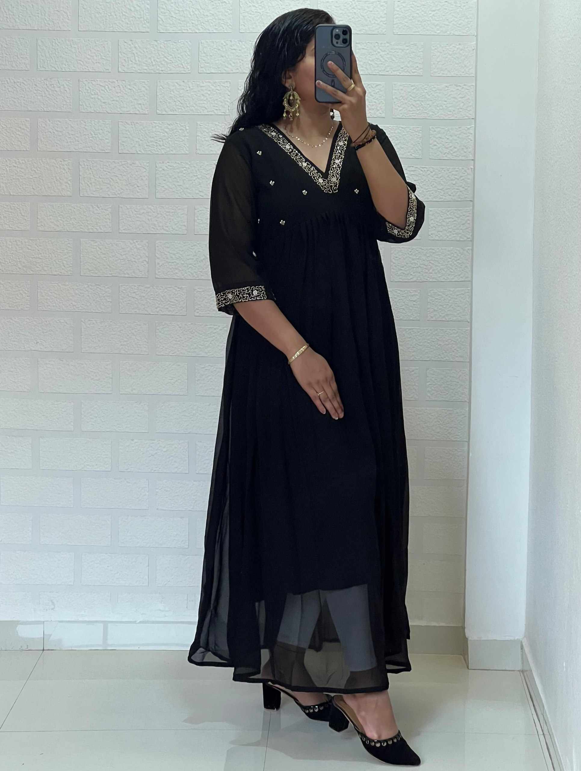 Reviews for WM10 BLACK BLOOMING GEORGETTE HANDWORK KURTI